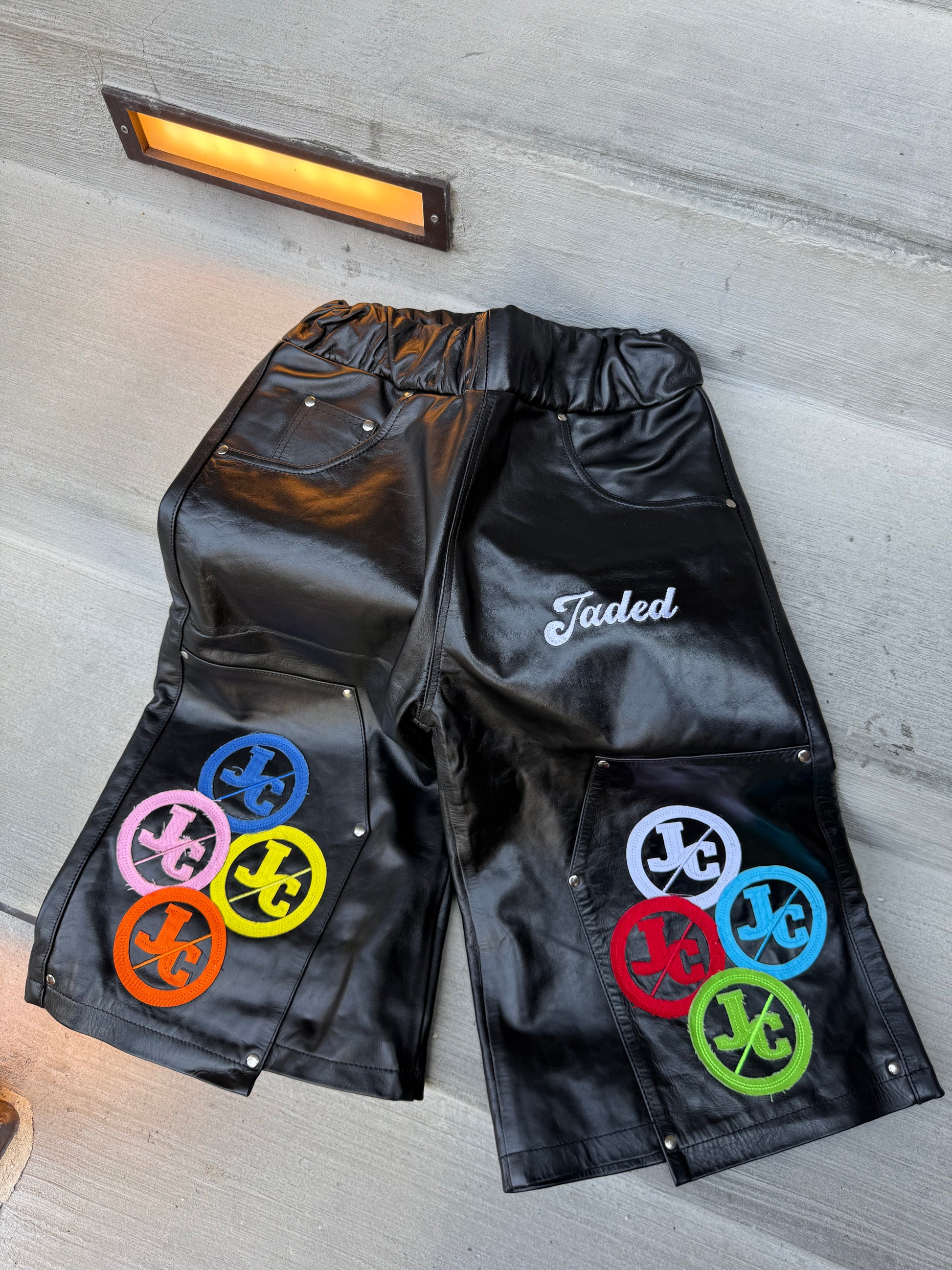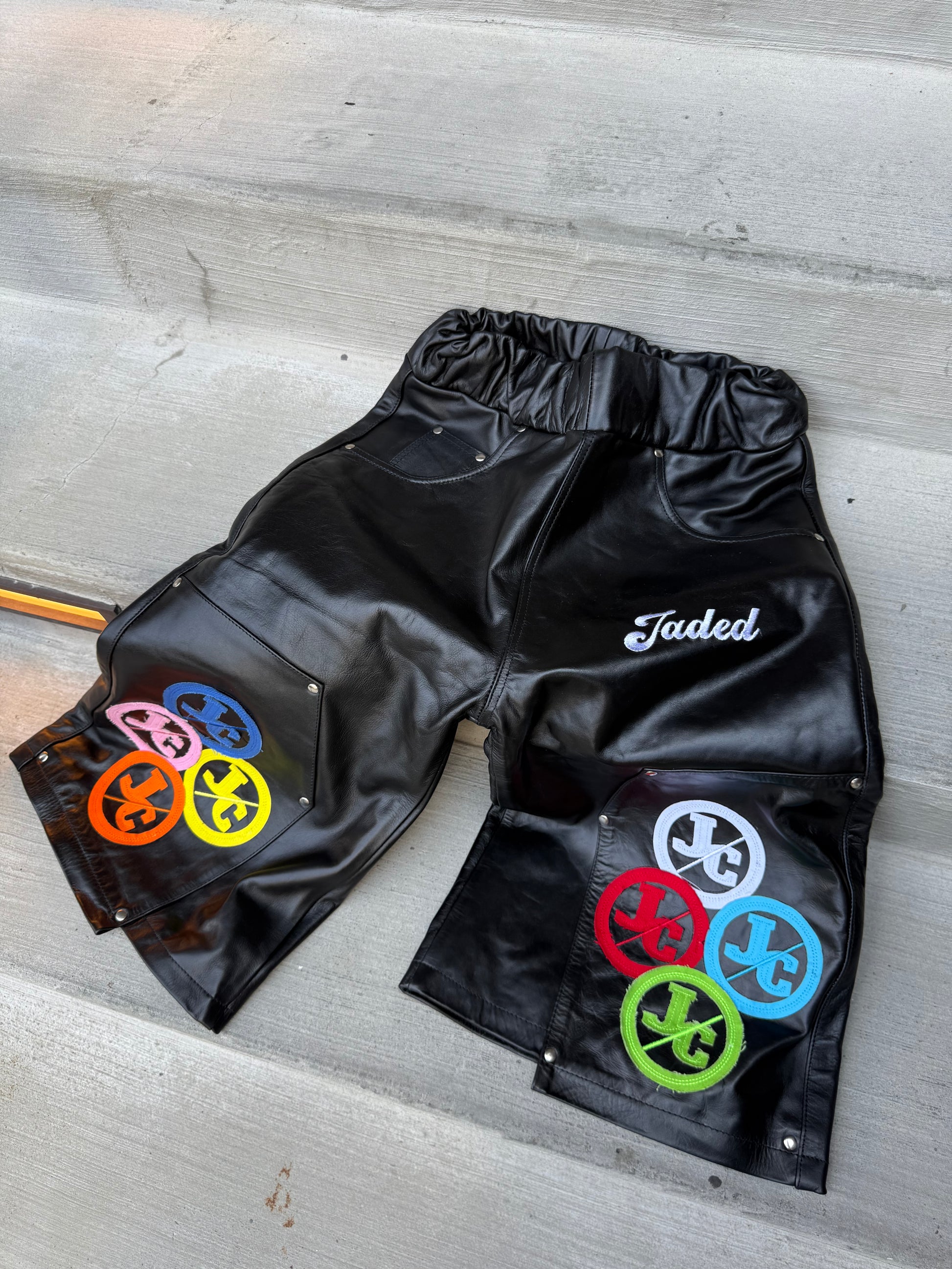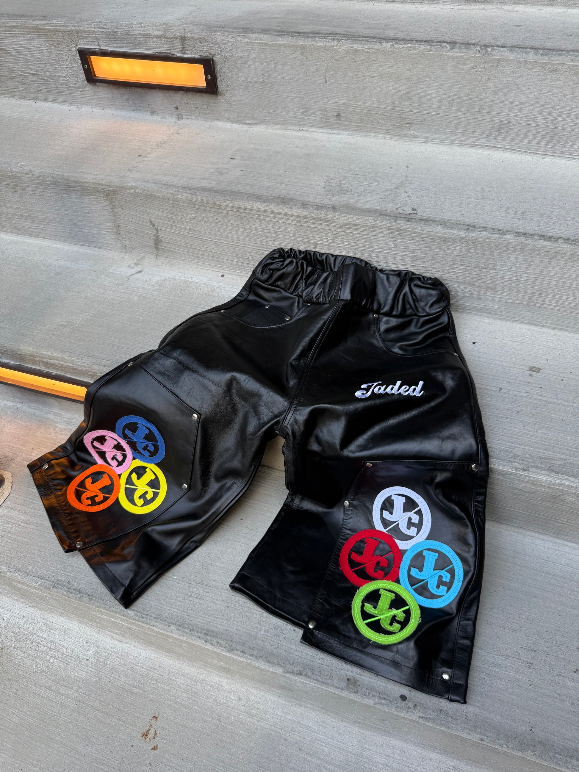 JADED OBSEDIAN LEATHER JORTS